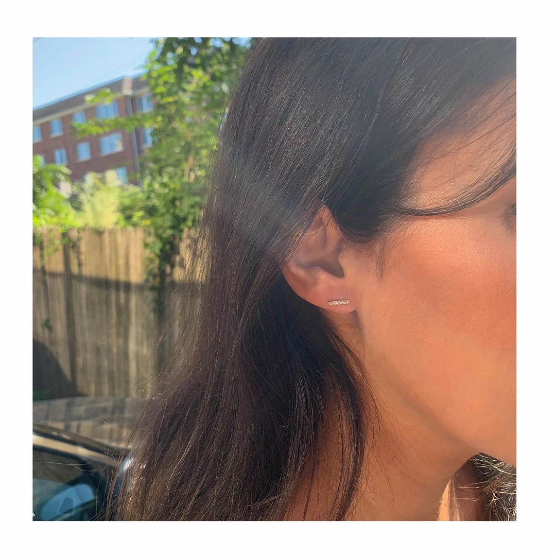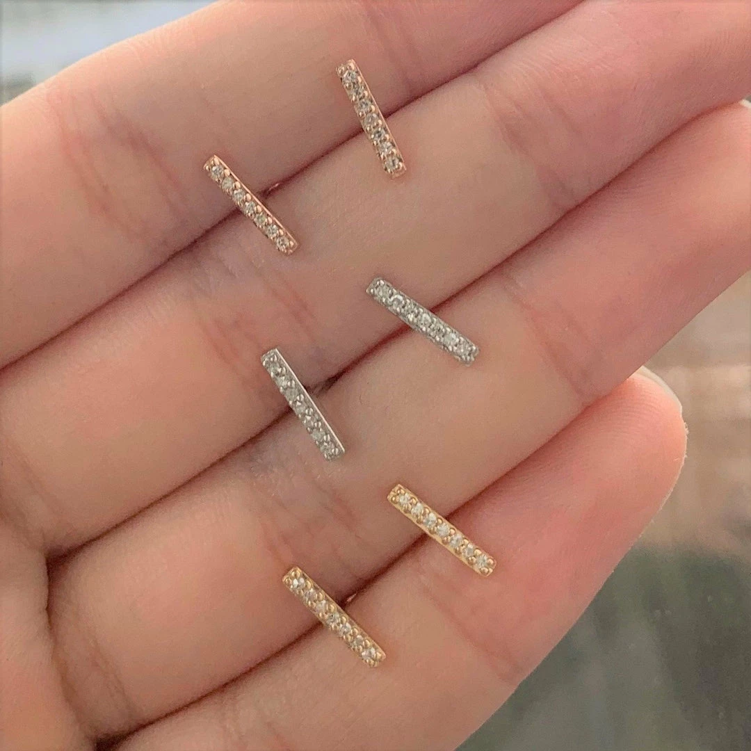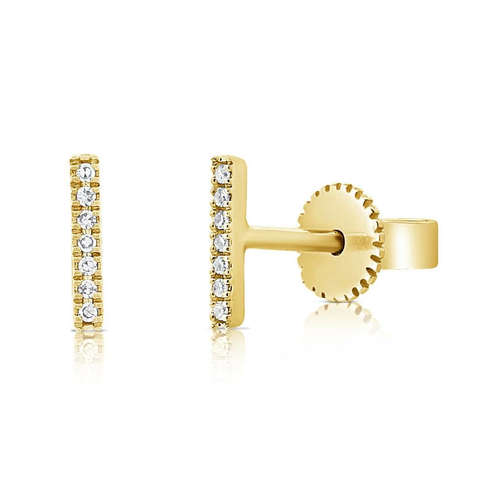14k Gold Diamond Bar Stud Earrings