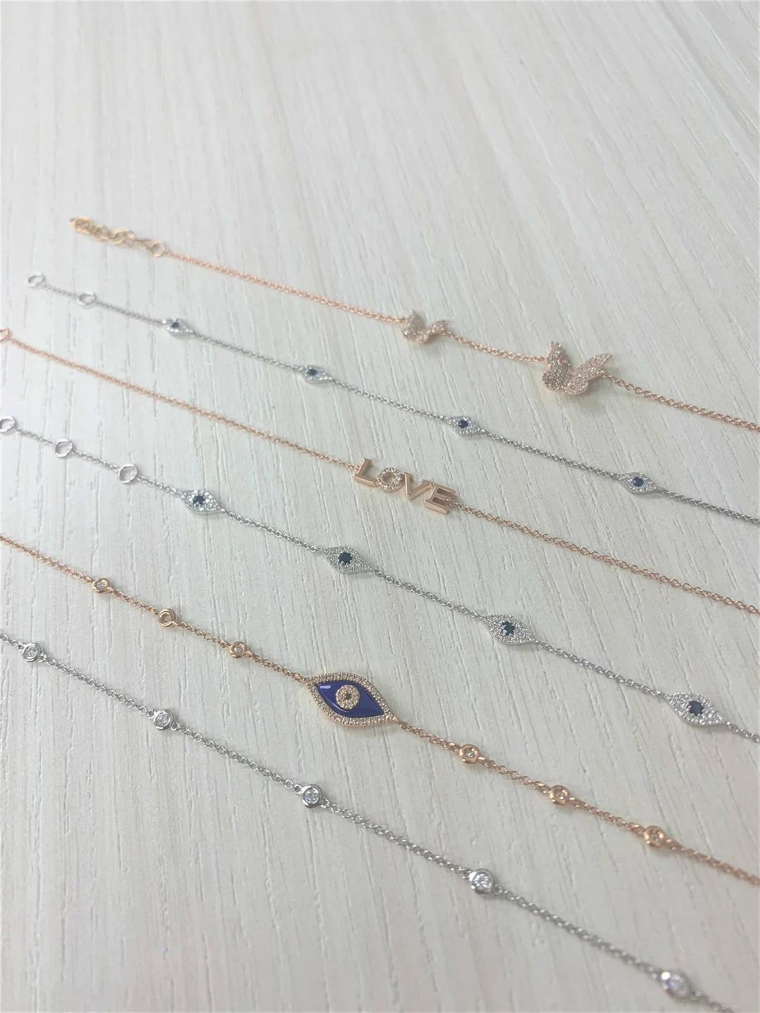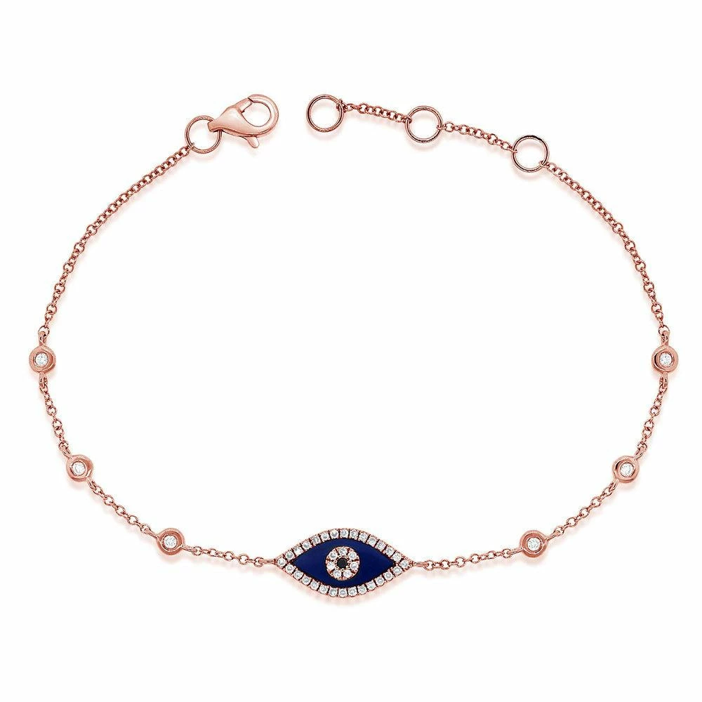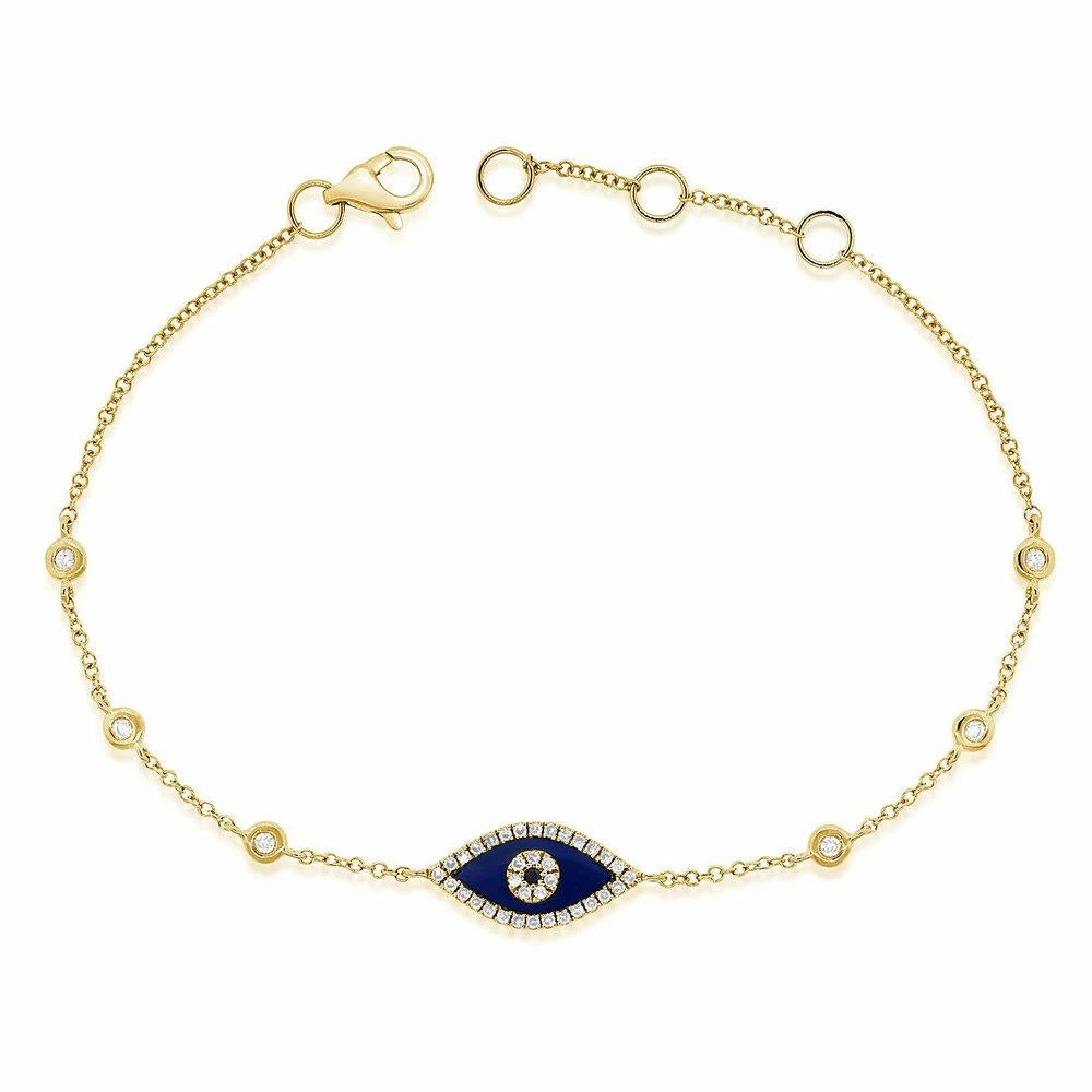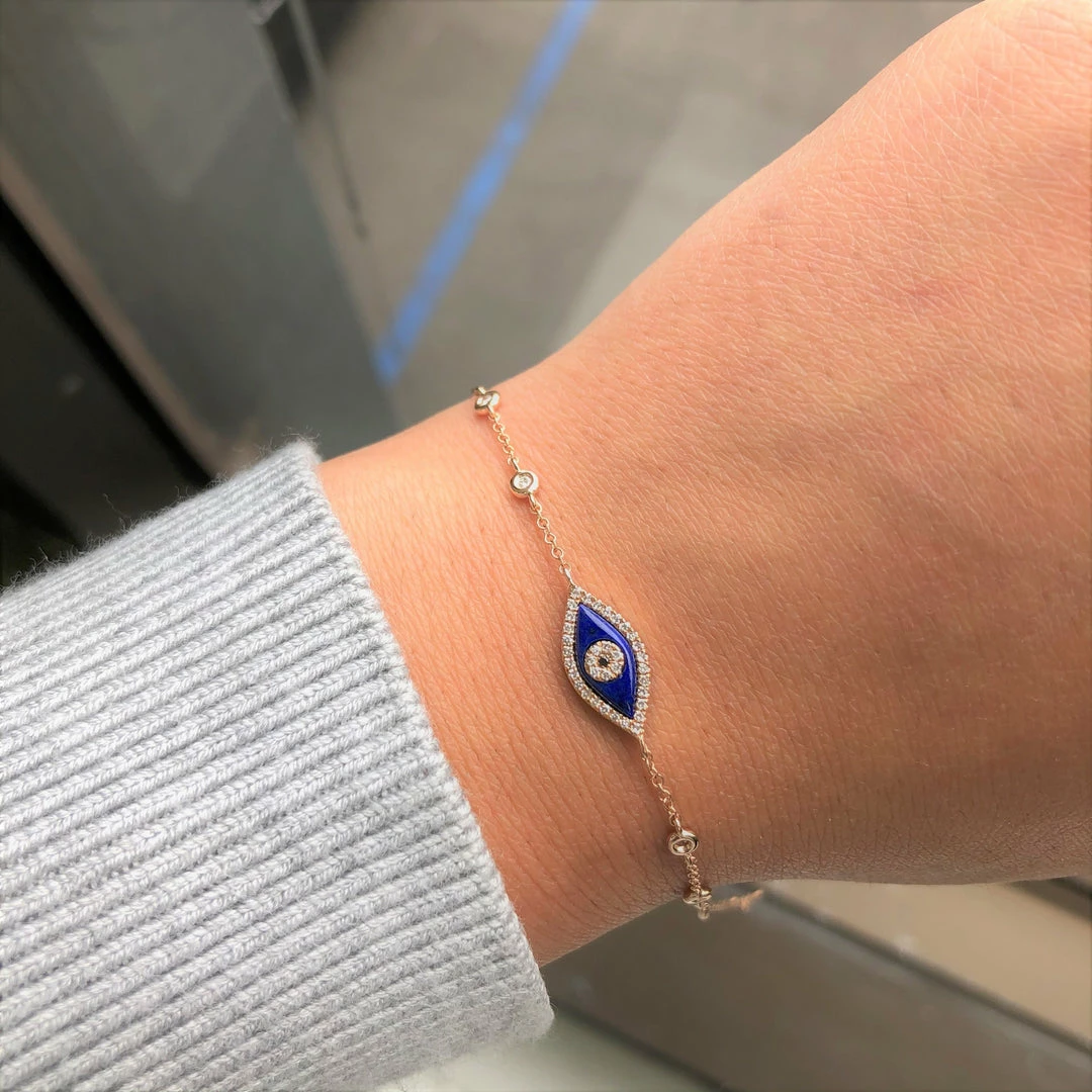 14K GOLD DIAMOND LAPIS EVIL EYE BRACELET
