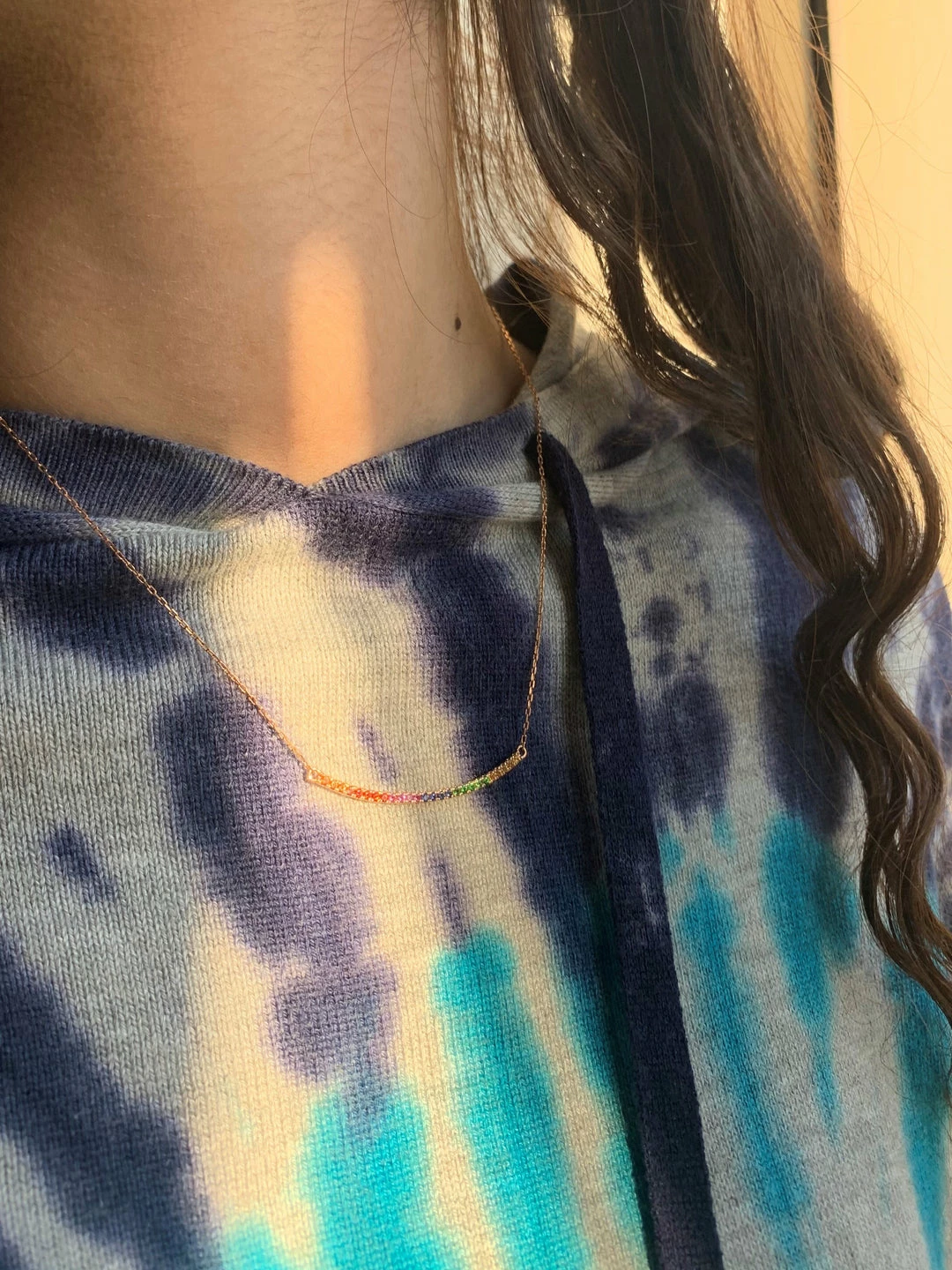 14K GOLD RAINBOW BAR NECKLACE